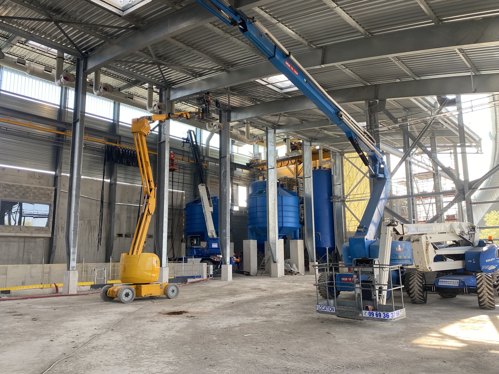 Le chantier a franchi plusieurs étapes structurantes avec la mise en place de l’ossature technique de la nouvelle unité. Parmi les installations en cours ou déjà réalisées figurent :