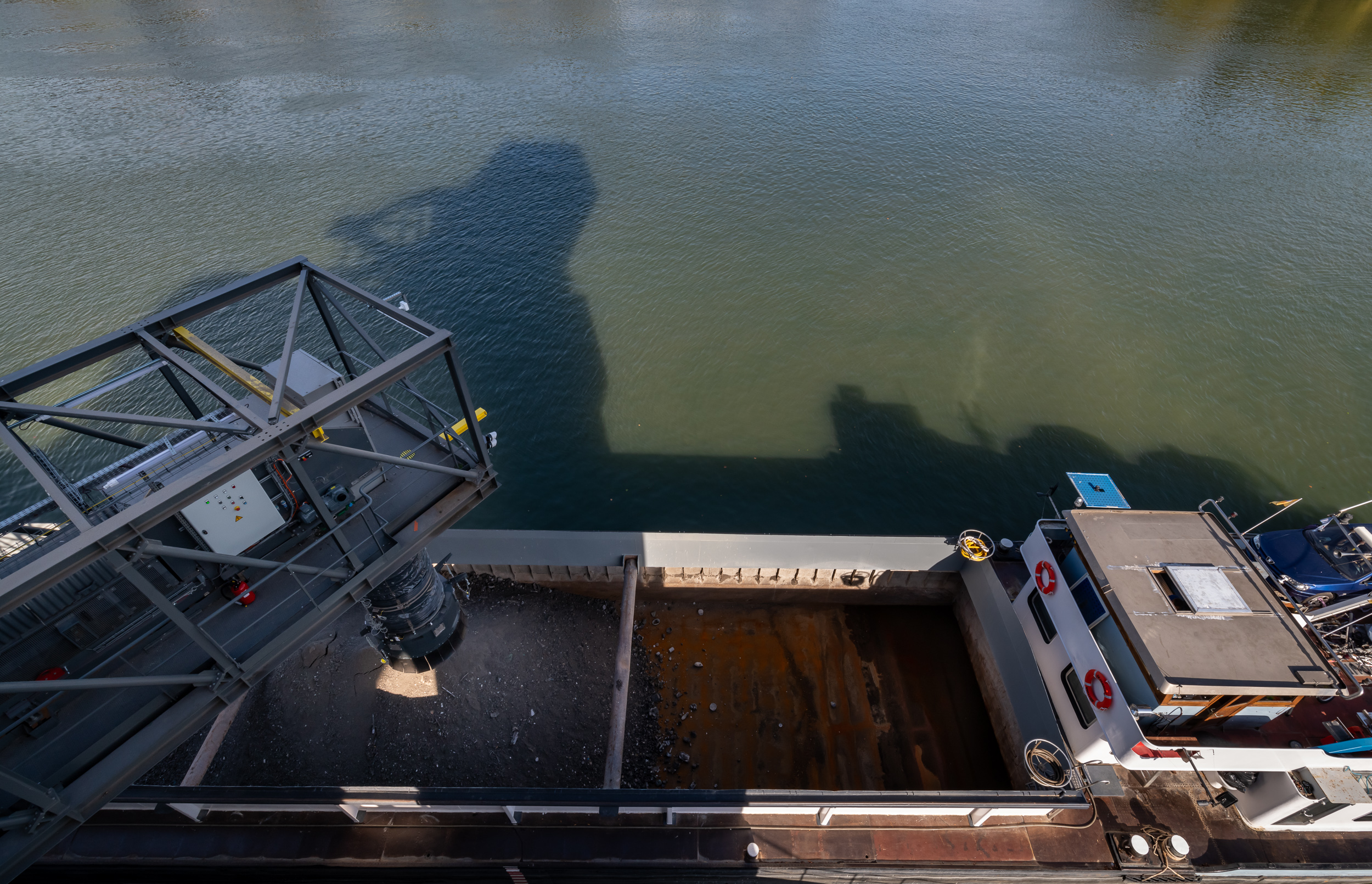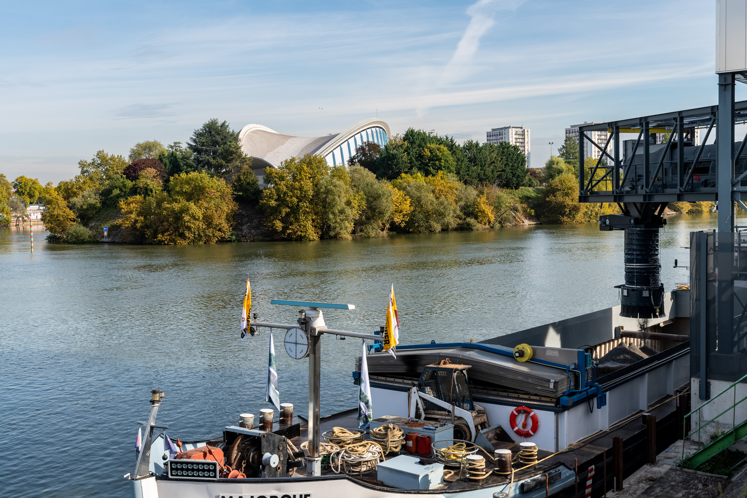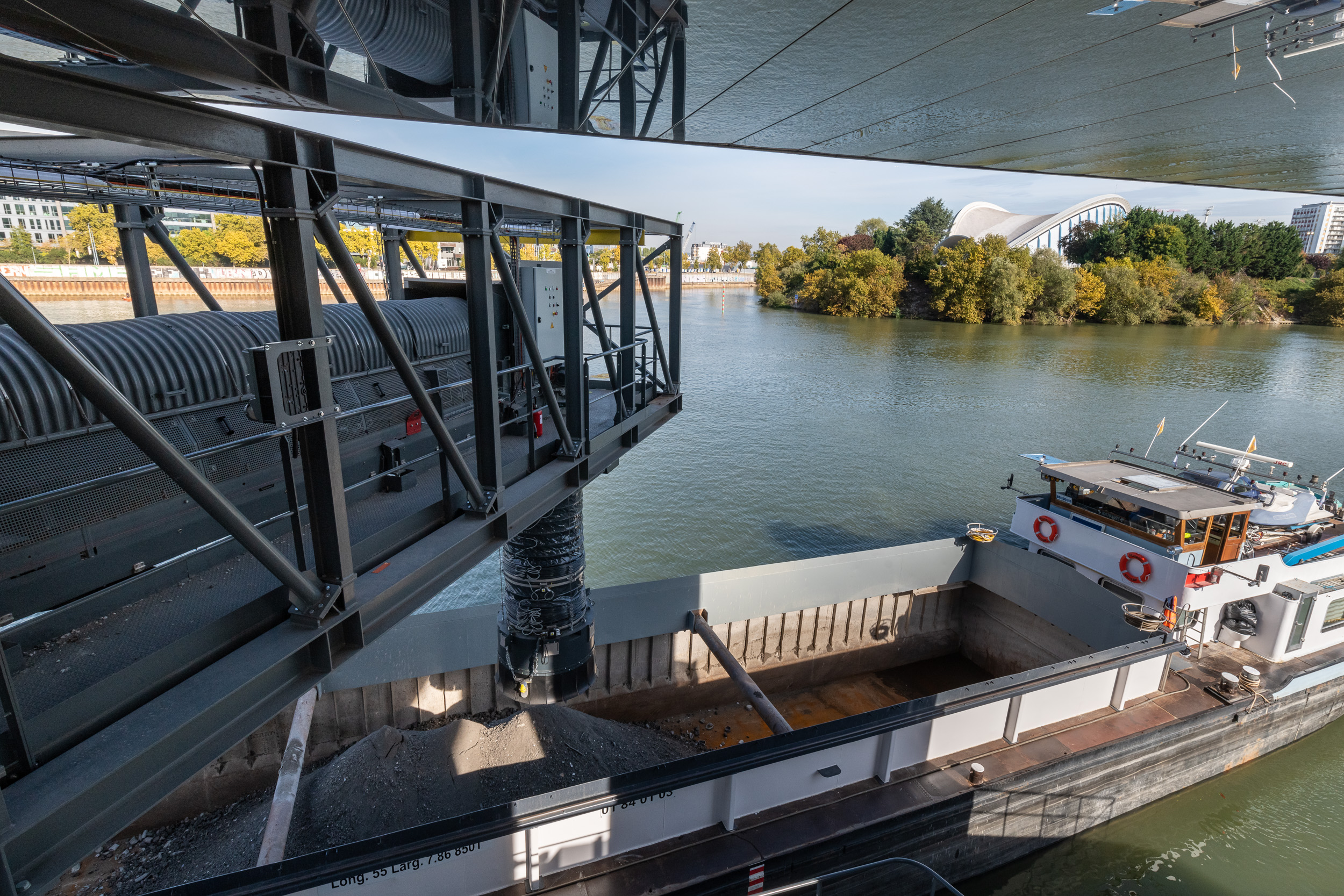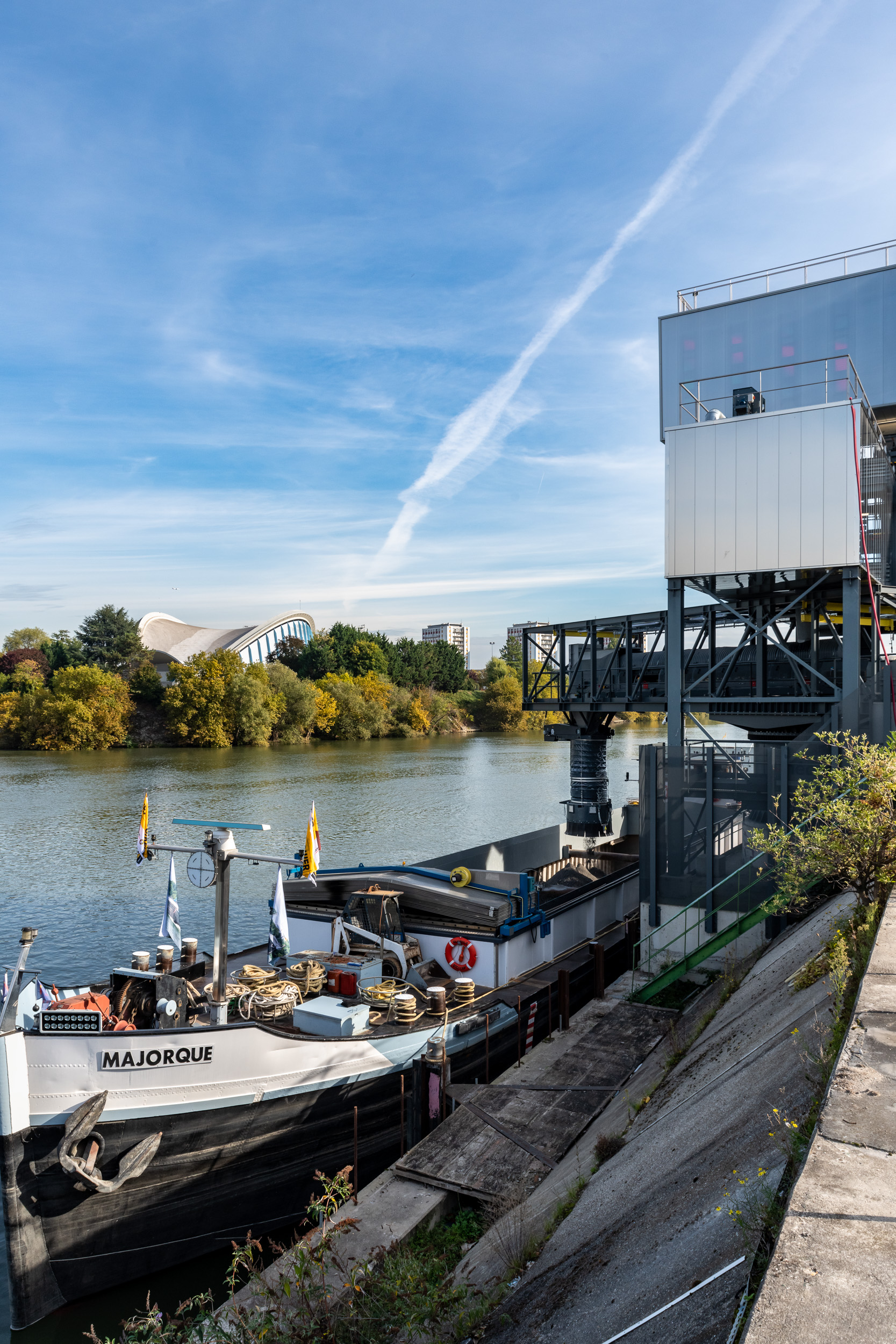 En phase de mise en service industrielle, le système de transbordement fluvial des mâchefers permet désormais un chargement direct des péniches sur la Seine depuis l’unité de valorisation énergétique (UVE) à Saint-Ouen-sur-Seine jusqu’aux centres de maturation. Le transbordeur, qui s’inscrit dans le cadre des travaux d’intégration urbaine de L’Étoile Verte, vient remplacer le dispositif de brouettage routier auparavant nécessaire entre l’usine et le fleuve et permet ainsi de réaliser l’économie de près de 28 000 trajets de camions par an.