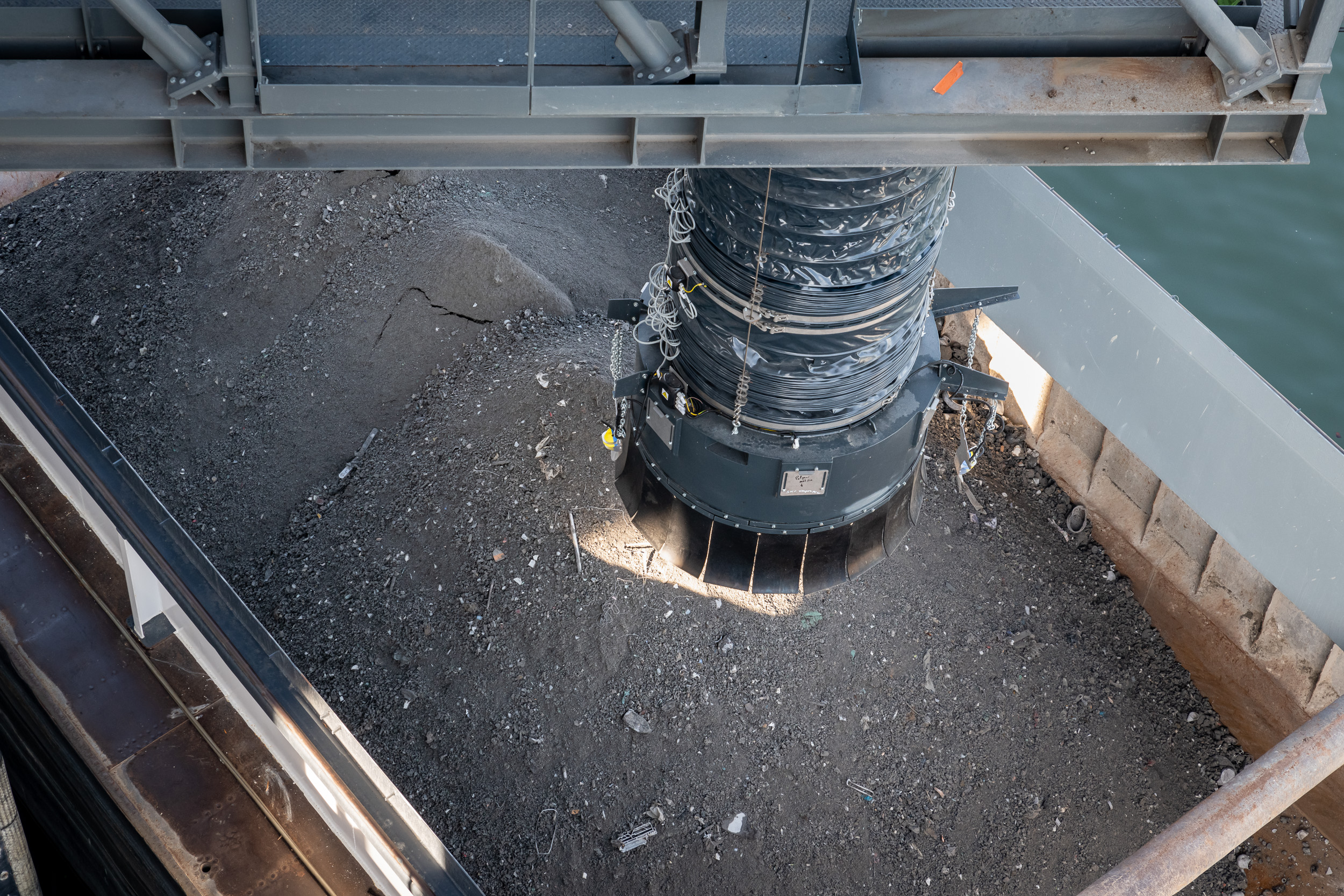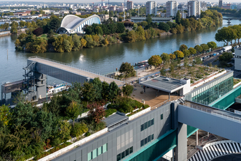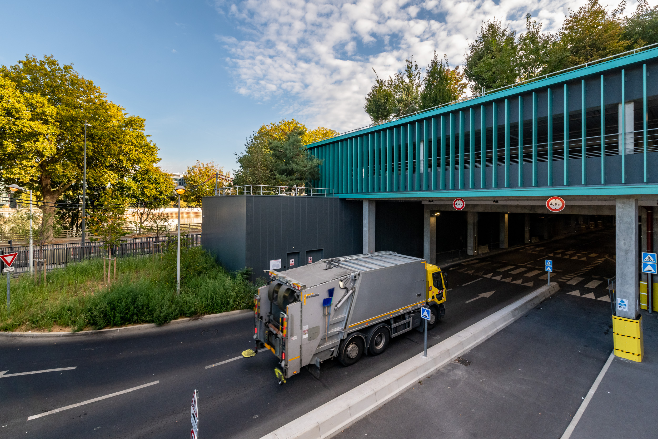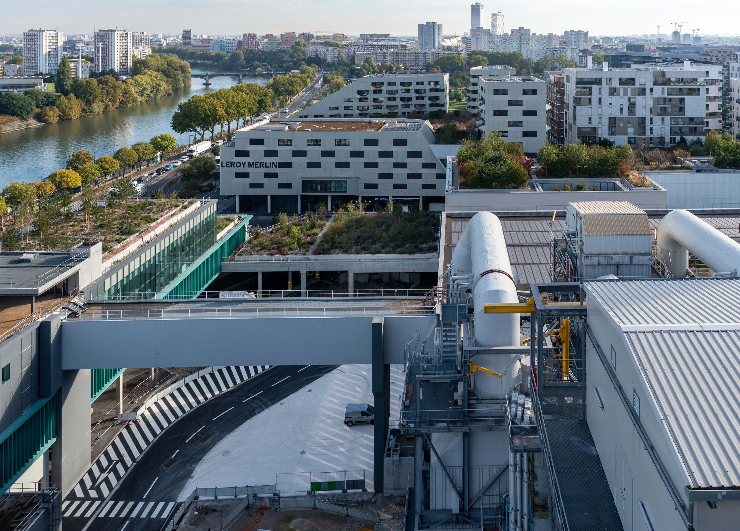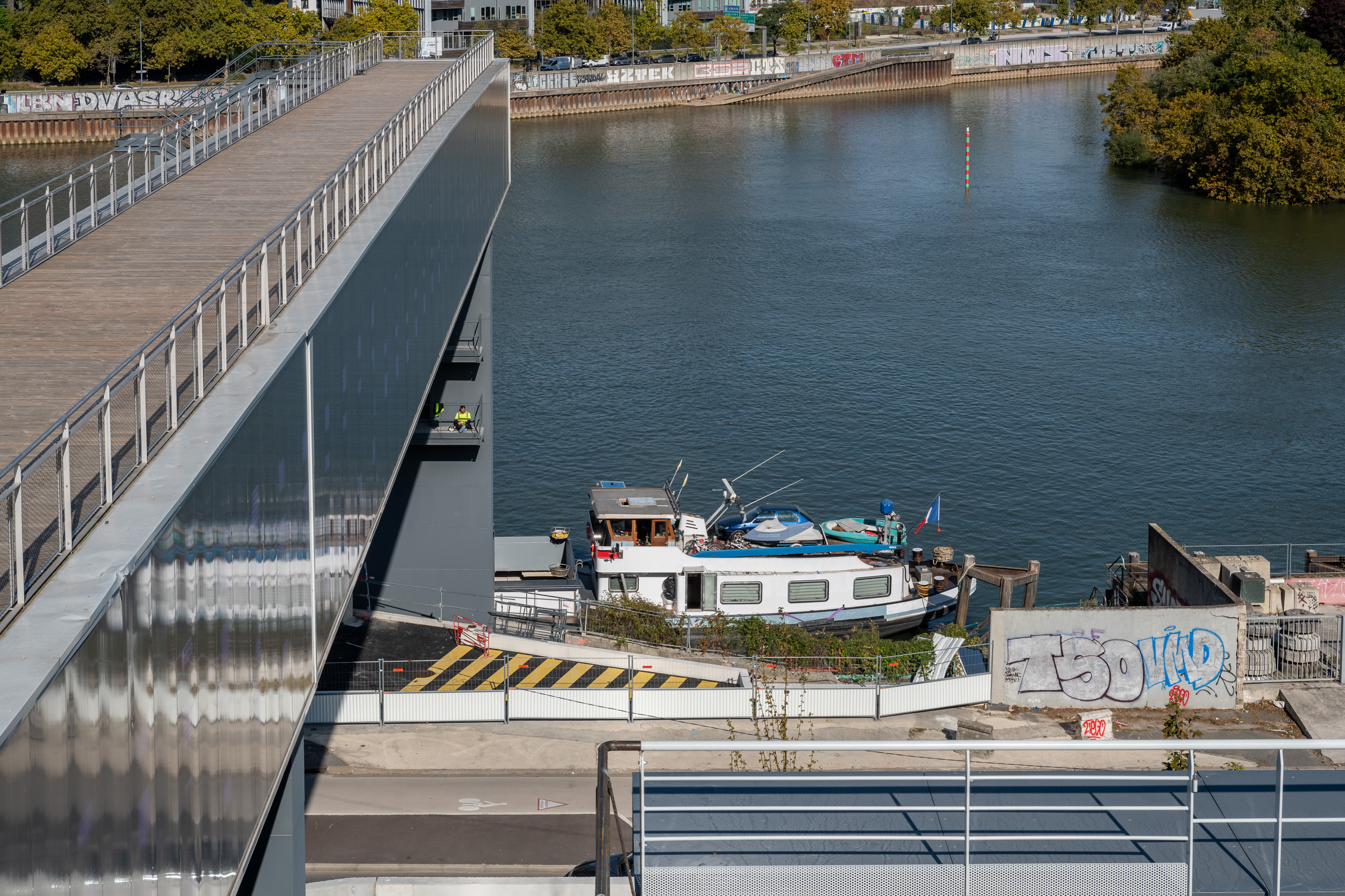 En phase de mise en service industrielle, le système de transbordement fluvial des mâchefers permet désormais un chargement direct des péniches sur la Seine depuis l’unité de valorisation énergétique (UVE) à Saint-Ouen-sur-Seine jusqu’aux centres de maturation. Le transbordeur, qui s’inscrit dans le cadre des travaux d’intégration urbaine de L’Étoile Verte, vient remplacer le dispositif de brouettage routier auparavant nécessaire entre l’usine et le fleuve et permet ainsi de réaliser l’économie de près de 28 000 trajets de camions par an.