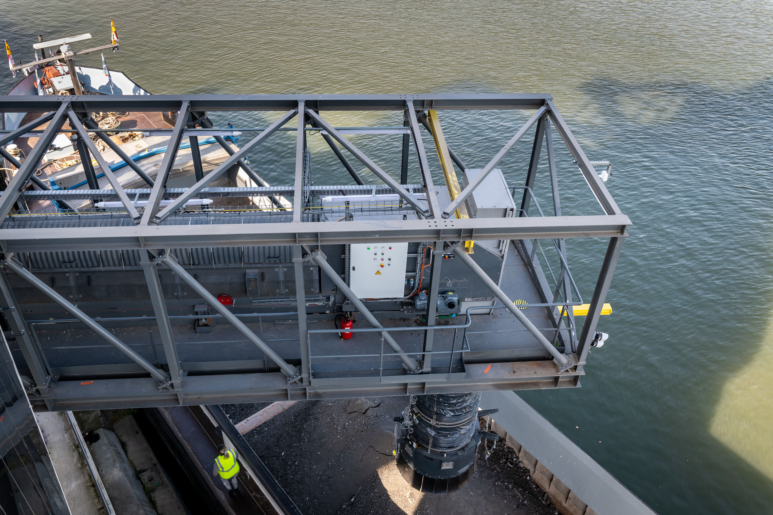 Le transbordeur, qui mesure 130 mètres de long, passe au-dessus de la RD1 et relie désormais le parc de stockage des mâchefers à la Seine grâce à un tapis roulant interne, assurant le convoyage des matériaux vers les péniches. Il va permettre de charger les péniches à un rythme de 130 tonnes par heure. À terme, ce sont 81 000 tonnes de mâchefers qui seront évacuées chaque année par voie fluviale.